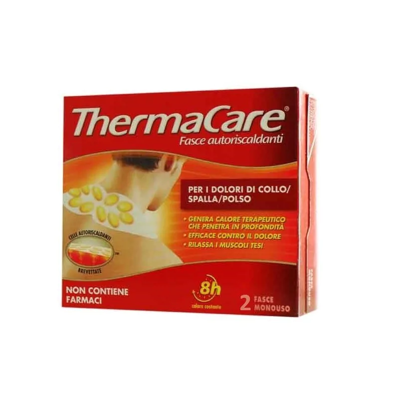 Se il problema sono i dolori muscolari nella zona cervicale, le tensioni dei muscoli del collo e della spalla o i dolori al polso, le fasce adatte sono quelle di "Therma Care" per collo, spalla e polso.