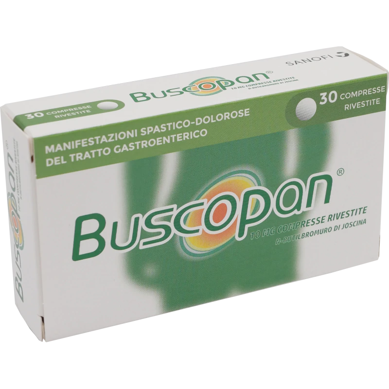 In presenza di intenso dolore addominale di cui non è nota la causa, che persista o peggiori, o che si manifesti insieme ad altri sintomi quali febbre, nausea, vomito, alterazioni nel movimento intestinale, sensibilità addominale, diminuita pressione sanguigna, svenimento o sangue nelle feci, è necessario rivolgersi immediatamente al medico. Gli anticolinergici devono essere usati con prudenza negli anziani, nei pazienti con turbe del sistema nervoso autonomo, nelle tachiaritmie cardiache, nell'ipertensione arteriosa, nell'insufficienza cardiaca congestizia, nell'ipertiroidismo e nei portatori di affezioni epatiche e renali. A causa del potenziale rischio di complicazioni legate ad un eccessivo effetto anticolinergico, occorre prestare attenzione nei pazienti soggetti al glaucoma ad angolo acuto così come nei pazienti suscettibili di stasi intestinale ed urinaria ed in quelli inclini a tachiaritmie. Gli anticolinergici possono prolungare il tempo di svuotamento gastrico e determinare stasi dell'antro. A causa della possibilità che gli anticolinergici possano ridurre la sudorazione, Buscopan deve essere somministrato con cautela nei pazienti con piressia. Il trattamento con dosi elevate non deve essere bruscamente interrotto. Gli effetti collaterali di minore entità possono essere controllati riducendo opportunamente la dose; la comparsa di importanti manifestazioni secondarie richiede l'interruzione della terapia. Una compressa rivestita da 10 mg contiene 41,2 mg di saccarosio pari a 247,2 mg per dose massima giornaliera raccomandata. Quindi i pazienti affetti da rari problemi ereditari di intolleranza al fruttosio non devono assumere questo medicinale.