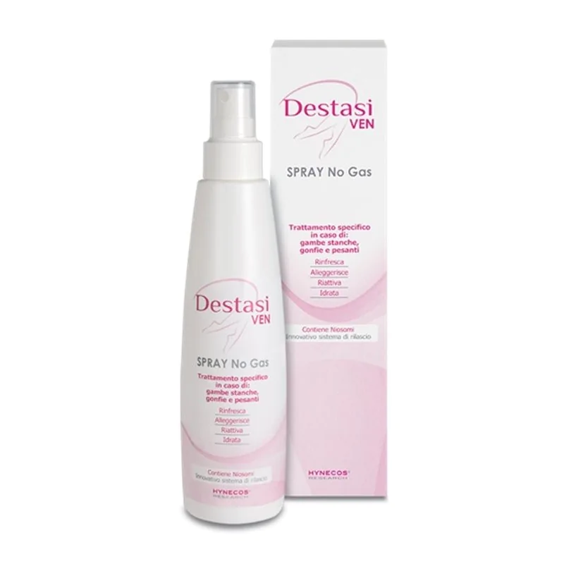 SPRAY No GasTrattamento specifico in spray che offre immediato sollievo, leggerezza e benessere alle gambe, dall'esterno. Favorisce la microcircolazione, riduce il senso di gonfiore, dona una piacevole sensazione di freschezza, ripristina l'idratazione e favorisce il trofismo cutaneo lasciando la pelle più compatta ed elastica. È a base di un mix di attivi in elevata concentrazione con Niosoma, innovativo sistema di rilascio che ne migliora la biodisponibilità, l’efficacia e ne prolunga il tempo di attività favorendone la diffusione. Il Niosoma Troxerutina e il Niosoma Escina-Caffeina-Forskolina aiutano a incrementare la resistenza dei vasi, a riattivare i capillari e a stimolare il microcircolo con riduzione dell’edema. L’Acqua di Hamamelis svolge un’azione tonica, rinfrescante e disarrossante, l’Aloe Vera ha proprietà lenitive, riepitelizzanti e rigeneranti, l’Acido Ialuronico ad alto peso molecolare protegge e distende i tessuti. Contiene inoltre Preventhelia in grado di proteggere il DNA cellulare favorendone la riparazione spontanea, Menthyl Lactate e Mentolo che producono un effetto rinfrescante marcato e a lunga durata.