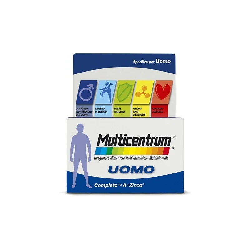 UOMO Integratore alimentare multivitaminico-multiminerale completo, formulato per supportare i fabbisogni nutrizionali degli uomini.