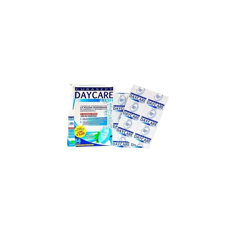 Curasept Daycare Fresh Detergente Per Protesi Dentaria 54 Compresse Effervescenti + Pasta Adesiva Omaggio
