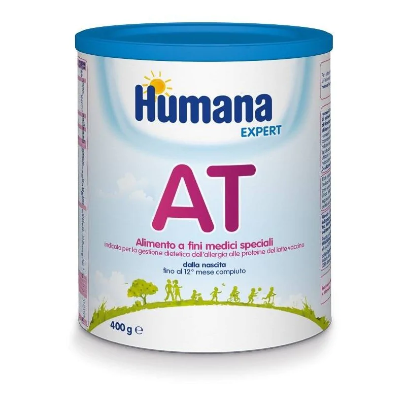 Humana AT è adatto a essere utilizzato come unica fonte di nutrimento nei primi 6 mesi di vita ed è idoneo all'alimentazione dei lattanti di età superiore ai 6 mesi all'interno di un'alimentazione complementare diversificata. Humana AT è a base di proteine del latte (sieroproteine e caseina) estensivamente idrolizzate e pertanto è indicato nell'alimentazione del lattante in caso di allergia alle proteine del latte vaccino. Non somministrare per via parenterale. Non utilizzare in caso di intolleranza al lattosio, galattosemia, malassorbimento di glucosio e galattosio.