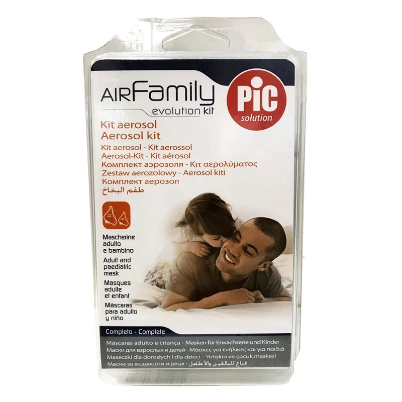 Il kit è al completo, contiene tutti gli accessori per la tua terapia con apparecchi aerosol a ultrasuoni Pic AirProjet Plus: mascherina ergonomica “2 in 1” per le esigenze di tutta la famiglia, un boccaglio, una forcella nasale, un tubo di raccordo.