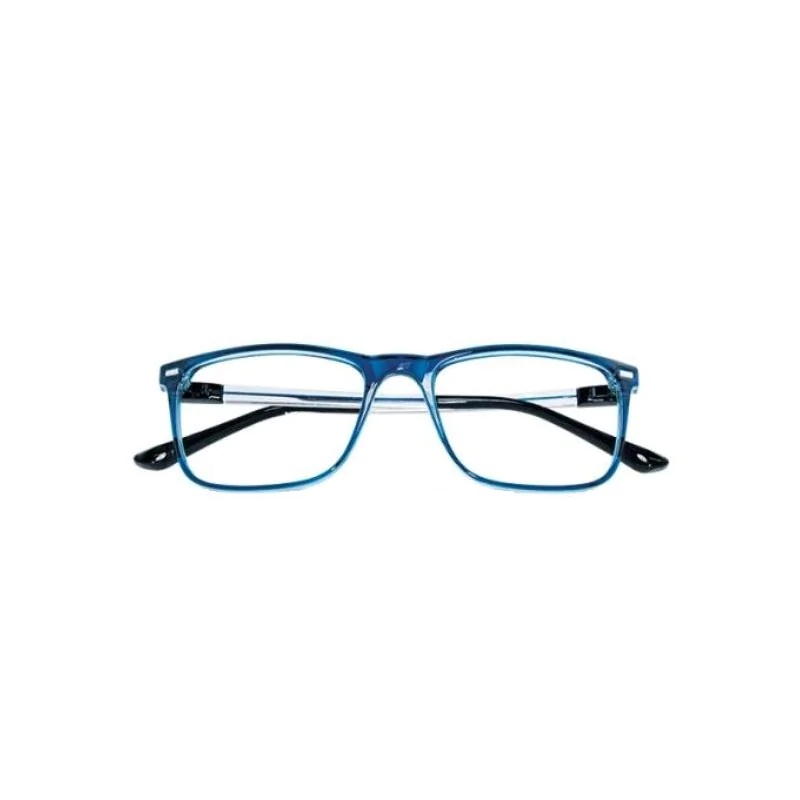Occhiali da lettura con lenti asferiche acriliche, montatura e astine flessibili in materiale iniettato.