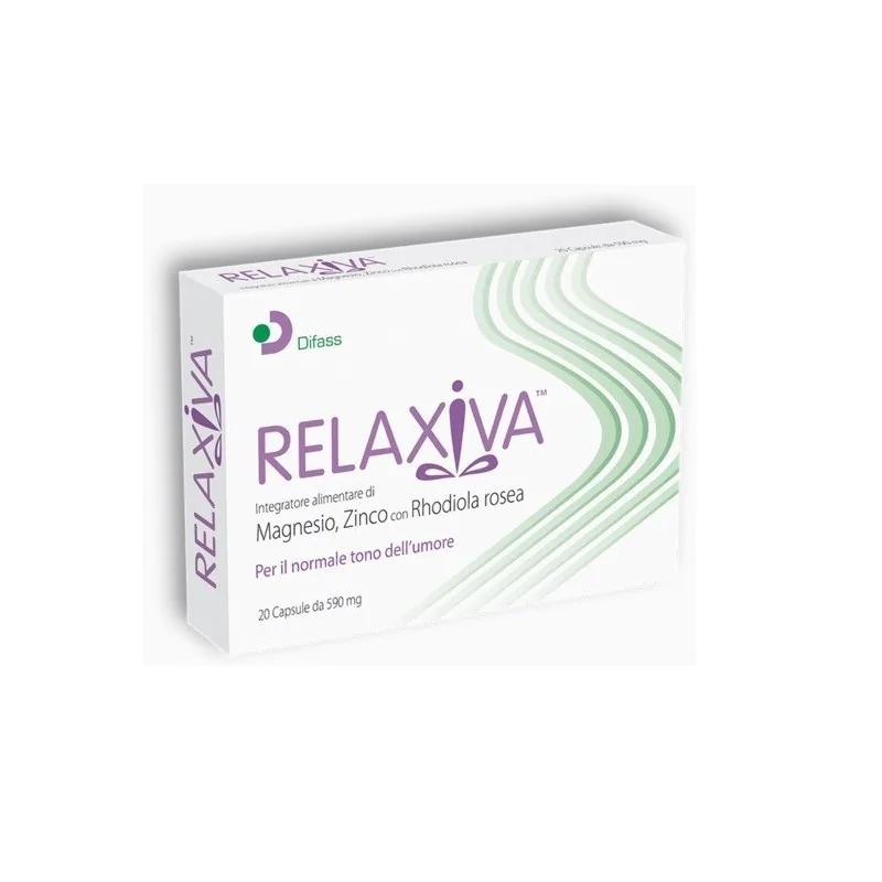 Relaxiva è un integratore alimentare di magnesio e zinco con rhodiola rosea. La rhodiola contribuisce al mantenimento del normale tono dell'umore, e ha funzione tonico adattogena per la stanchezza fisica e mentale. Il magnesio contribuisce all'efficienza della funzione psicologica. Il contributo del magnesio alla normale funzione psicologica comprende sia ambiti cognitivi che affettivi, intendendo aspetti mentali e nervosi come la concentrazione, l'apprendimento, la memoria e il ragionamento. Infine, la presenza dello zinco supporta la funzione cognitiva, come la resistenza allo stress.