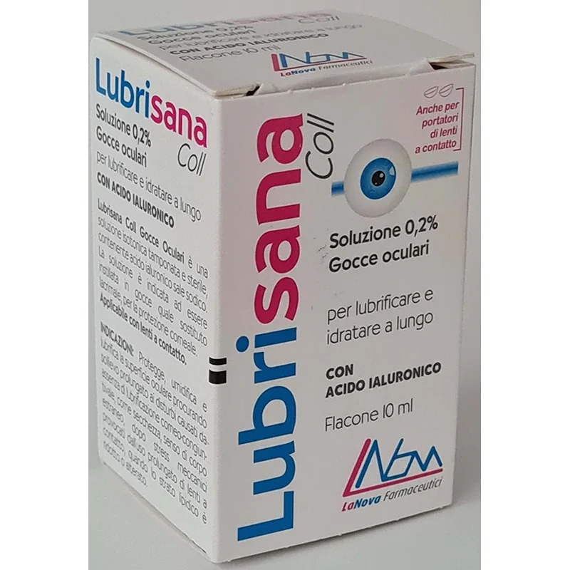 Lubrisana coll. Gocce Oculari è una soluzione isotonica tamponata e sterile contenente Acido ialuronico sale sodico. La soluzione è indicata ad essere instillata in gocce quali sostituto lacrimale, per la protezione corneale. Da sollievo dopo stress meccanico dovuto all’uso di lenti a contatto.
