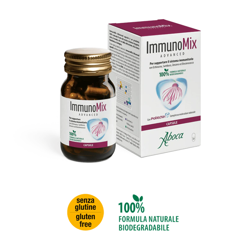 Aboca Immunomix Advanced è un integratore frutto di un sistema integrato unico al mondo che va dalla coltivazione alla ricerca fitochimica e biologica che, formulato con echinacea, sambuco, zenzero ed eleuterococco, supporta efficacemente il sistema immunitario non solo durante il periodo invernale, ma in tutte le situazioni in cui il sistema immunitario risulta indebolito.