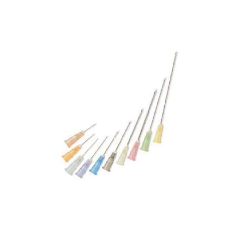 Disponibile in confezione: cono luer n.1 g 20 x 1 1/2"; cono luer n.2 g 21 x 1 1/2"; cono luer n.12 g 22 x 1/4"; cono luer n.14 g 23 x 1 1/4"; cono luer n.16 g 23 x 1"; cono luer g 25 insulina; cono luer g 27 tubercolina; cono luer mm. 1,10x40 g 19 per prelievo; cono luer mm. 1,20x40 g 18 per prelievo; cono luer mm. 30x13 g 30 per microiniezioni.