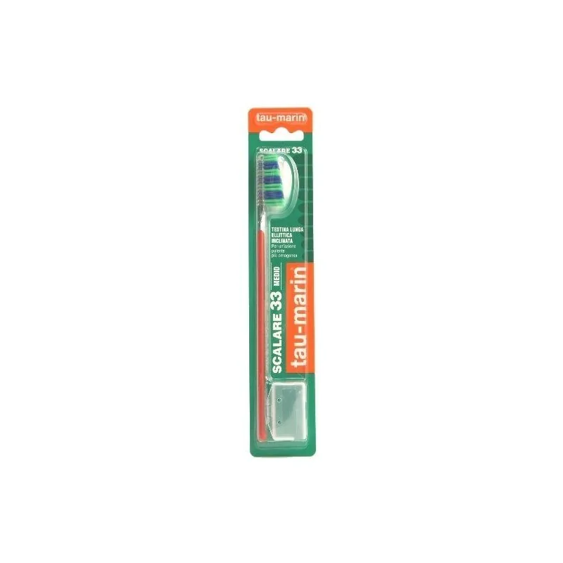Scalare 33 (Setole medie)Specificatamente disegnato per garantire una pulizia completa della superficie dentale permettendo al tempo stesso un massaggio gengivale perfetto. Testina ellittica scalare, inclinata di 15°. Studiata per garantire una maggiore pulizia anche nei punti più difficili da raggiungere. Setole arrotondate in Tynex ad elasticità differenziata. Il materiale perfetto per evitare traumi a denti e gengive, liberando il cavo orale dai batteri e garantendo un’ottima resistenza nel tempo. Setole medie, per rimuovere efficacemente la placca, e semirigide, per massaggiare delicatamente le gengive. Manico ergonomico studiato nella forma e nella lunghezza per una giusta impugnatura.