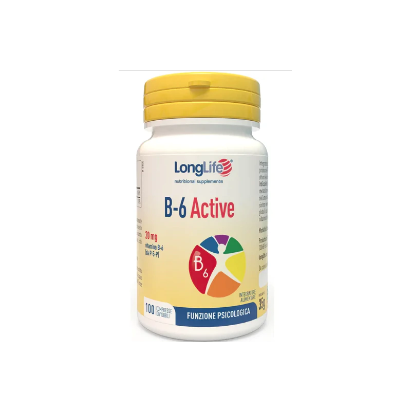 La vitamina B6 supporta la funzione psicologica, il metabolismo energetico, delle proteine, del glicogeno e dell'omocisteina. Inoltre, è coinvolta nel funzionamento del sistema nervoso e immunitario, nel processo di formazione dei globuli rossi, nella regolazione dell'attività ormonale e nella riduzione di stanchezza e affaticamento.
