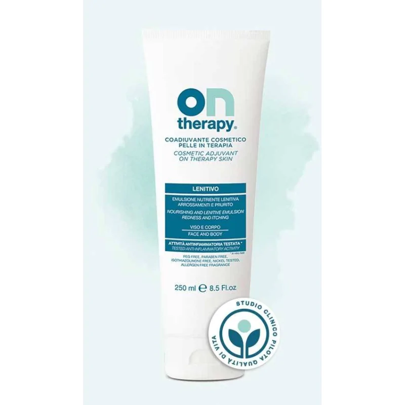 Crema lenitiva per la pelle anche in terapia oncologica. Emulsione olio in acqua con tecnologia a cristalli liquidi che attenua arrossamenti e prurito. Favorisce il ripristino della barriera cutanea e normalizza le attività delle difese naturali della pelle. Attività antinfiammatoria testata* (mediante valutazione in vitro dell'attività disarrossante). La crema lenitiva e idratante aiuta a ridare sollievo alla pelle irritata, secca e arrossata. Elevata tollerabilità fin dalla nascita - Test Clinico Pediatrico. OntherapyLenitivo è suggerito a chi, anche in seguito a terapie farmacologiche e oncologiche, è soggetto a xerosi, eruzioni maculo papulari (rash cutaneo), fotosensibilizzazioni, eritemi da irraggiamento, eritrodisestesia palmoplantare (sindrome mano piede) e edemi cutanei post operatori. La crema lenitiva Ontherapy nutre la pelle secca e arrossata, rendendola morbida a lungo e garantendo un intenso effetto idratante.