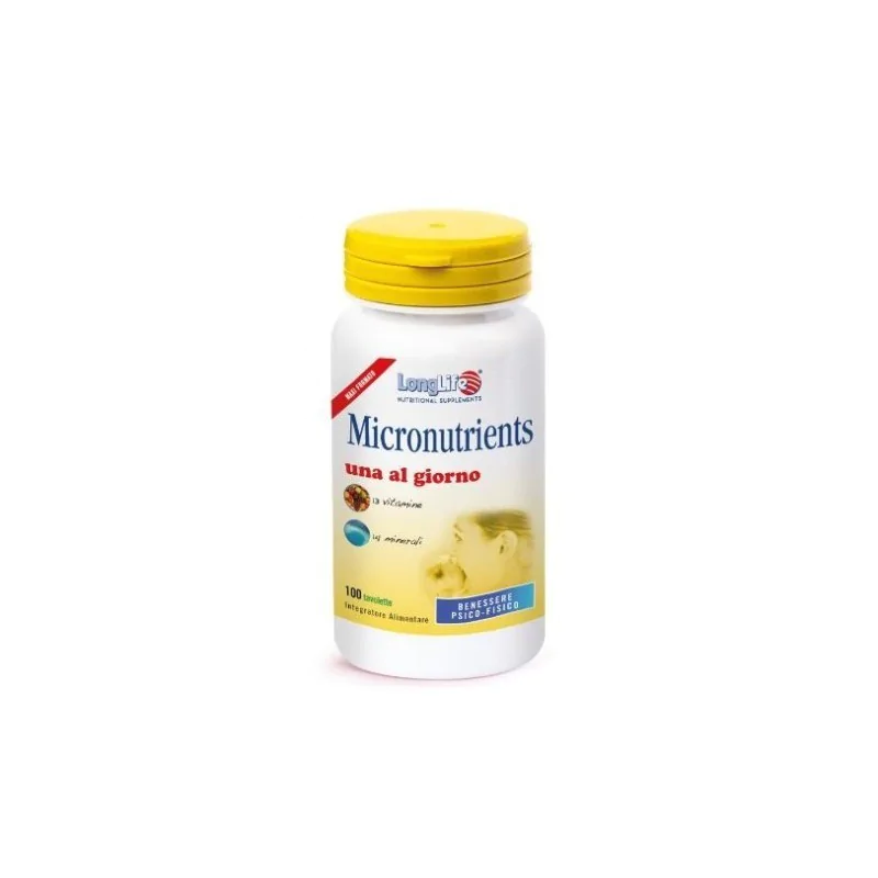 Questo integratore, ricco di vitamine, minerali ed elementi traccia, è stato formulato per coprire le esigenze nutrizionali giornaliere dell'organismo. Efficace in caso di ridotto apporto con la dieta o di un aumentato fabbisogno, la supplementazione con Micronutrients è in grado di rispettare un adeguato piano d'integrazione finalizzato a mantenere il benessere psicofisico dell'organismo.