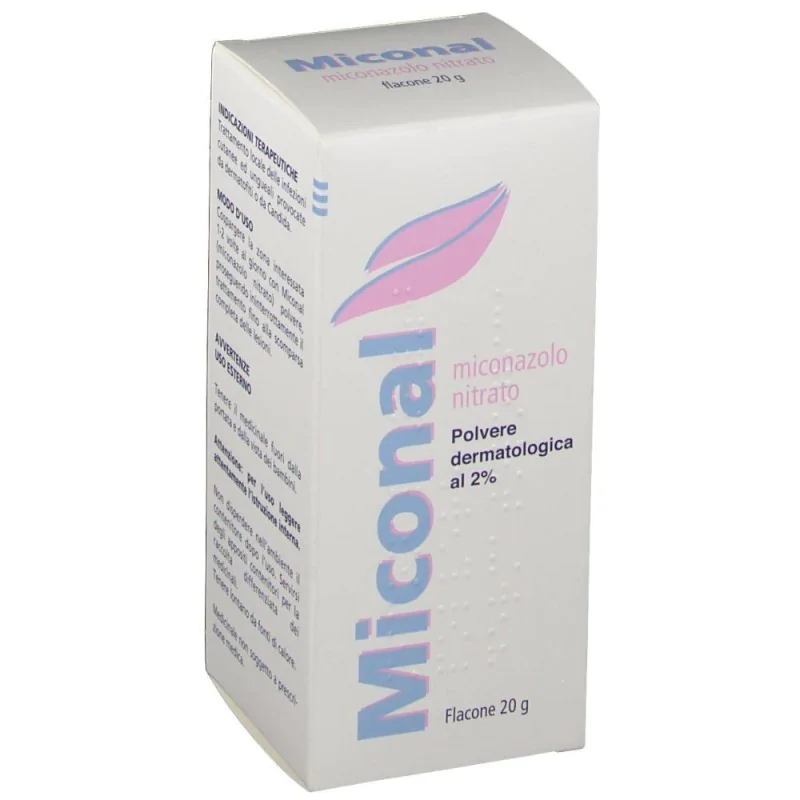 Ogni g di crema dermatologica o ginecologica contiene: Principio attico: MICONAZOLO NITRATO mg 20 Ogni g di polvere contiene: Principio attivo: MICONALZOLO NITRATO mg 20 Ogni ovulo contiene: Principio attivo: MICONAZOLO NITRATO mg 50 Ogni capsula contiene: Principio attivo: MICONAZOLO NITRATO mg 1200 100 ml di lavanda contengono: Principio attivo: MICONAZOLO mg 200
