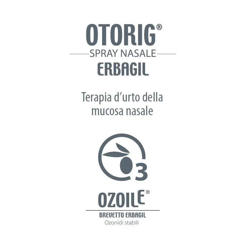 Dispositivo medico protettivo, decongestionante e igienizzante delle cavità nasali, specifico per la prevenzione e il trattamento delle affezioni rinofaringee sia acute che croniche caratterizzate da irritazione, gonfiore, prurito, bruciore, produzione eccessiva di muco. Formula innovativa, è un valido aiuto in caso sindromi influenzali, da raffreddamento, di natura allergica o da inquinanti ambientali e nei postumi operatori in ORL. Otorig spray nasale decongestiona le vie nasali, riduce l’ostruzione e regolarizza le secrezioni promuovendo uno scambio osmotico che favorisce il richiamo di fluidi dalla mucosa e fluidifica il muco facilitandone la rimozione. La sua formulazione con Ozoile mantiene ben idratata la mucosa e svolge un'importante azione igienizzante e protettiva creando un film lipidico mucoadesivo ostile alle alterazioni del microbiota che ripristina il buono stato delle cavità nasali.