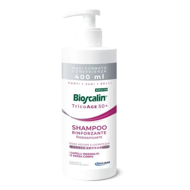 Dettagli Bioscalin Tricoage 50+ Shampoo Rinforzante Ridensificante Maxi Formato 400 ml
