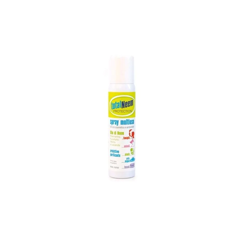 Formulazione concentrata a base di olio di Neem arricchita da purissimi e selezionati oli essenziali al 100% di origine naturale. Spray fresco multiuso, protettivo e purificante, dalla profumazione molto piacevole ma sgradita ad insetti, parassiti ed altri agenti indesiderati. Pratico e versatile ad utilizzo sia ambientale che cosmetico, crea un efficace "scudo" in modo delicato e naturale. Formulazione ecofriendly senza gas propellenti e dermocompatibile senza conservanti, petrolati, profumi sintetici, è indicata per tutta la famiglia, animali, piante, tessuti e per purificare l'aria degli ambienti.Componenti
