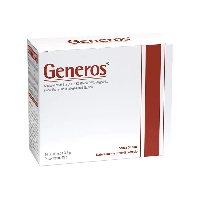 Prodotto a base di vitamina C, D e K2 (Mena Q7), magnesio, zinco, rame, boro ed estratto di bambù utile in caso di carenza o accresciuto fabbisogno di...