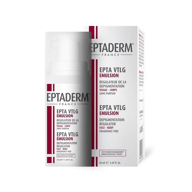 Trattamento destinato a promuovere la regolazione del depigmentamento. Il suo meccanismo d'azione consente di riequilibrare il metabolismo delle cellule della pelle grazie ai suoi agenti antiossidanti e anti-radicali. La formula di EPTA VTLG rende un'eccellente tolleranza cutanea. Non è né grassa né penetra in fretta.
