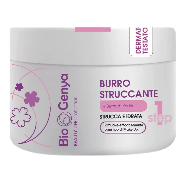 Per una detersione più profonda, rimuovere l'eccesso di burro con un dischetto di cotone imbevuto con acqua detergente BioGenya, poi risciacquare con acqua tiepida e mousse.