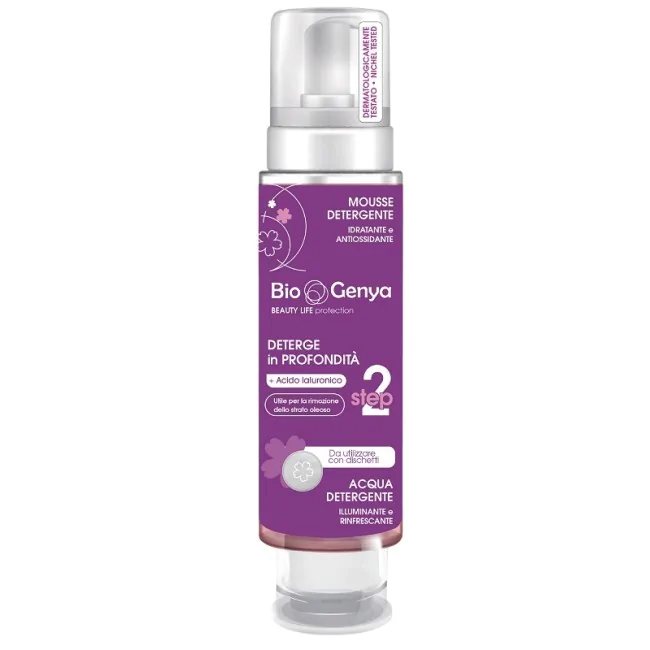 Innovativo detergente viso 2 in 1, perfetto da utilizzare come seconda fase nella doppia detersione, unisce il potere di una soffice mousse ad un'acqua detergente rinfrescante. La formula esclusiva, arricchita con acido ialuronico, deterge delicatamente idratando. può essere utilizzata con la pratica pump per trasformare il detergente in una nuvola di mousse, o applicabile con un dischetto, grazie al pratico erogatore. Utile per detergere e per rinfrescare la pelle. Perfetto per mantenere la pelle luminosa e rivitalizzata ogni giorno.