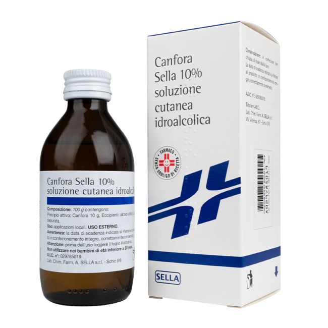 Dettagli Canfora Sella 10% Soluzione Cutanea Idroalcolica Canfora Sella 10% Soluzione Cutanea Oleosa Canfora