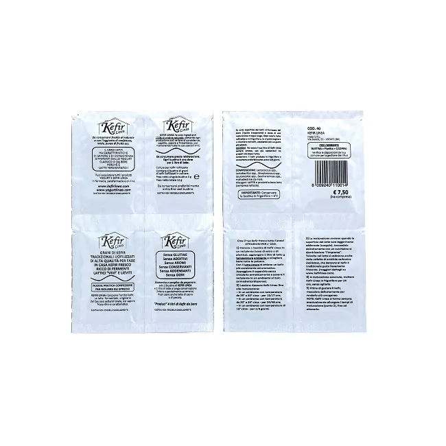 DescrizioneGrani di kefir tradizionali liofilizzati di alta qualità per fare in casa kefir fresco.