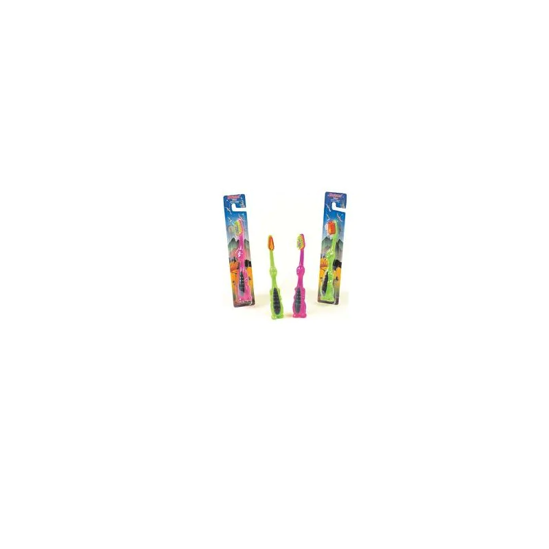 Testina dalle dimensioni ridotte adatta ai bambini. Testina con punte arrotondate delle speciali setole in Tynex, di durezza media. Manico simpatico e scherzoso a forma di dinosauro.