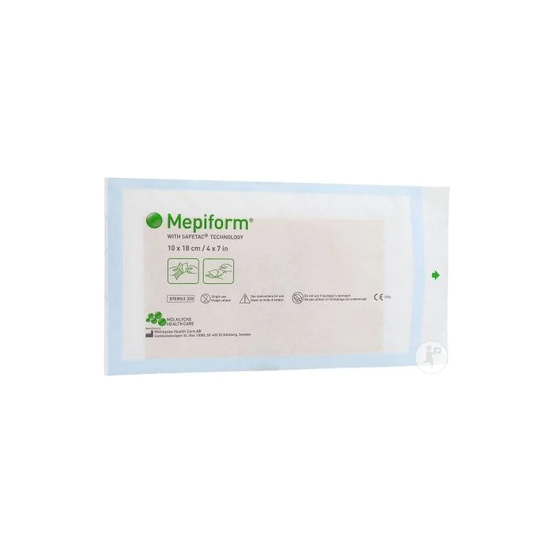 Dispositivo Medico CE, classe I. Medicazione in silicone morbido con Tecnologia Safetac, sottile, flessibile, delicata e discreta. Mepiform è utile per prevenire, appiattire, ridurre e ammorbidire cicatrici ipertrofiche e cheloidi, sia di nuova che di vecchia formazione. Grazie alla Tecnologia Safetac, aderisce delicatamente alla cute fragile e non causa dolore al momento della rimozione. Può essere indossata durante tutte le attività quotidiane. È impermeabile e riutilizzabile, può essere indossata fino a 7 giorni. Il suo colore è così simile al colore della pelle da renderla praticamente invisibile. Clinicamente testata.Modalità d'uso