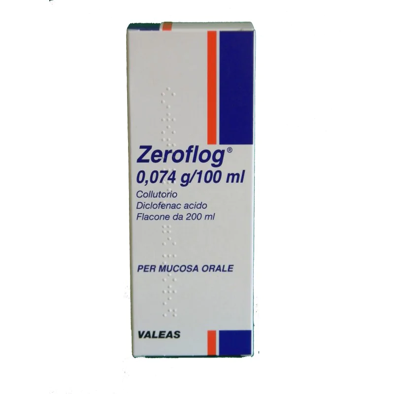 Dettagli Valeas Ind. Chim. Farmac. Zeroflog 0,074 G/100 Ml Collutorio, 1 Flacone Diclofenac Acido
