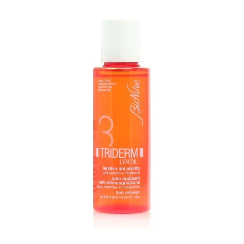 Zanthoxylum bungeanum estratto naturale dei frutti (Zanthalene): ricco di idrossialcamidi con intensa azione sulla trasmissione sinaptica del prurito a livello delle terminazioni epidermiche. Vitamina E (25%): antiossidante efficace nel contrastare la perossidazione lipidica e la conseguente attivazione dei mastociti, elementi cellulari fortemente coinvolti nella trasmissione della sensazione pruriginosa. Tetraidropiperina: attivatore della permeabilità percutanea, favorisce e amplifica l’azione antipruriginosa di Triderm Len’Oil.